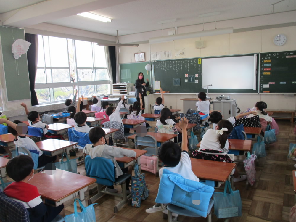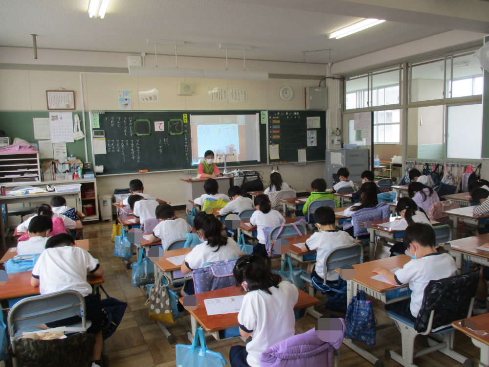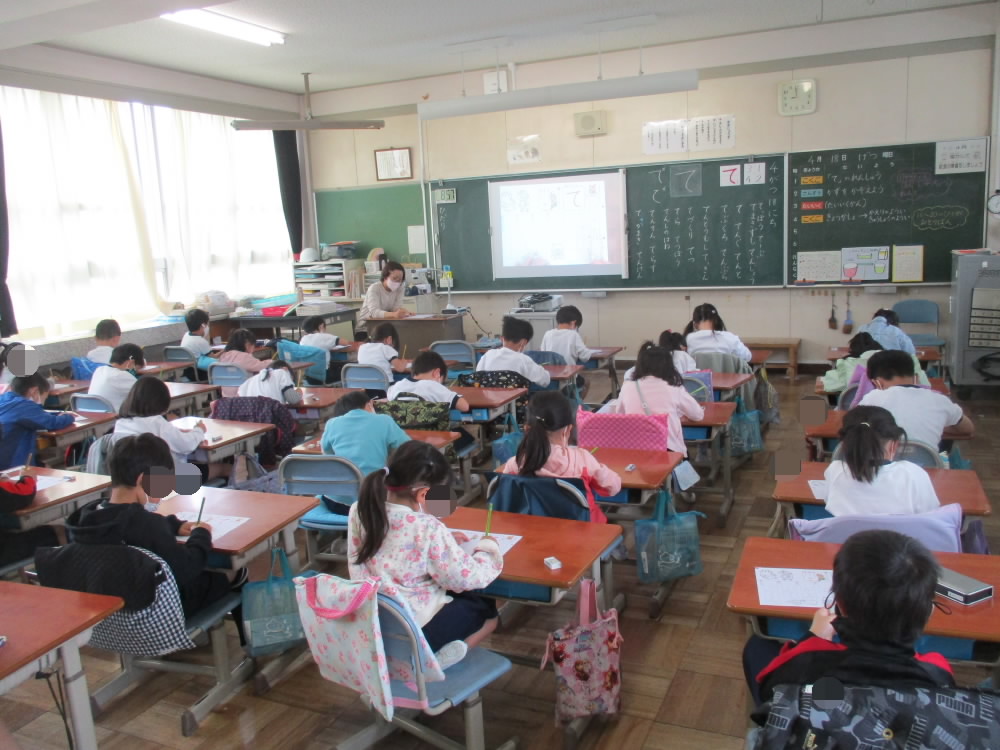 さて、今日の1年生の1時間目は、各学級でひらがなの「て」の学習をしていました。どの学級もICT機器を活用して子どもたちにわかりやすく視覚化して授業を進めていました。1年生の子どもたちは、空書きしたりなぞったりしながら楽しそうに学習していました。ひらがなを一つひとつ覚えていって、まずは自分の名前をしっかり書けるようになるといいね。