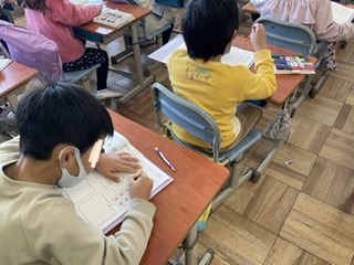 今年度も残りわずか。1年生は、この1年間の振り返りをしてキャリアパスポートに記録していました。こうして振り返ることで、子どもたちは、自分自身の成長を実感し、次の学年への意欲にもつながると思います。