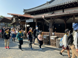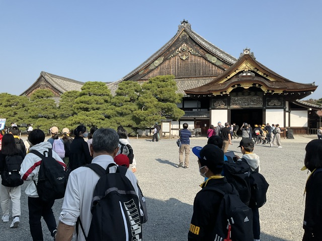 クラス写真を撮影後、現地のSKYガイドさんと出会い、班別活動をスタートさせました。二条城の後は、班ごとに計画した見学先へ向かいます。
