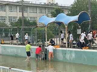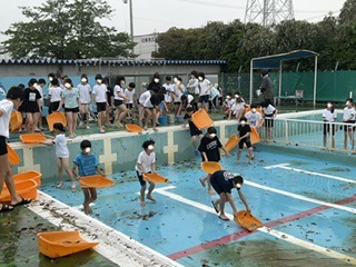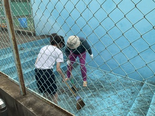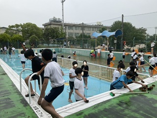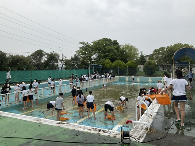 残念ながら雨模様の天気になりましたが、今日は午後から6年生によるプール掃除。プールの中だけではなく、更衣室やトイレまでみんなできれいにしました。