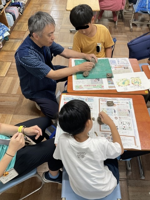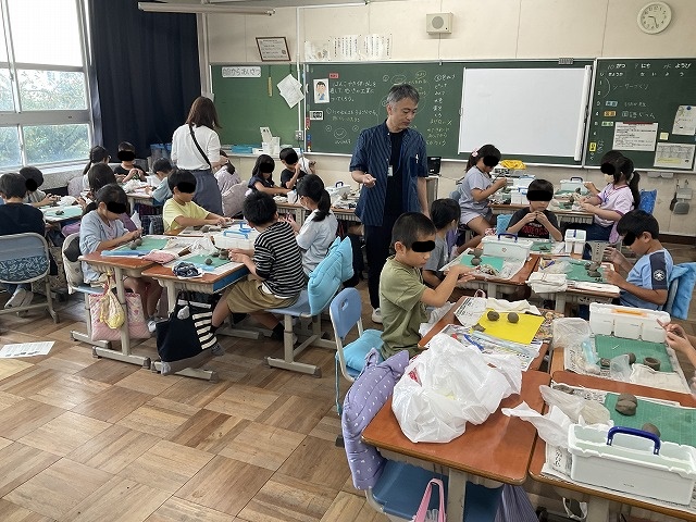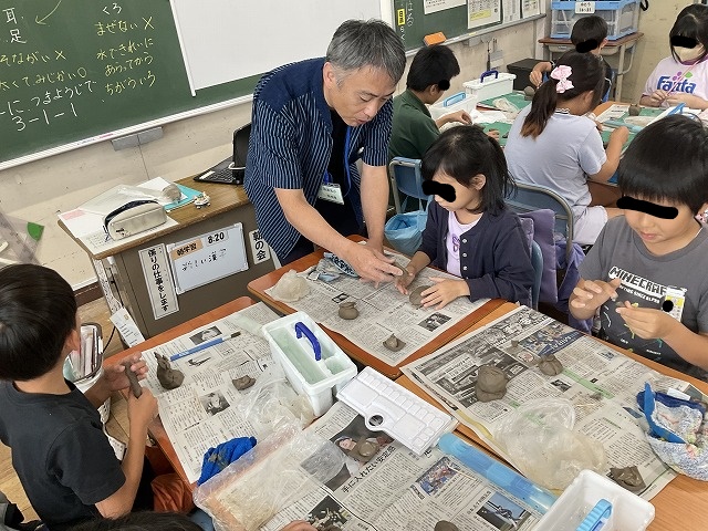 9日(水)の1・2限目に、今年も酔月陶苑の清水さんを講師として来ていただき、3年生が「シーサー」を作成しました。