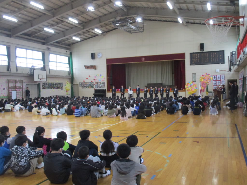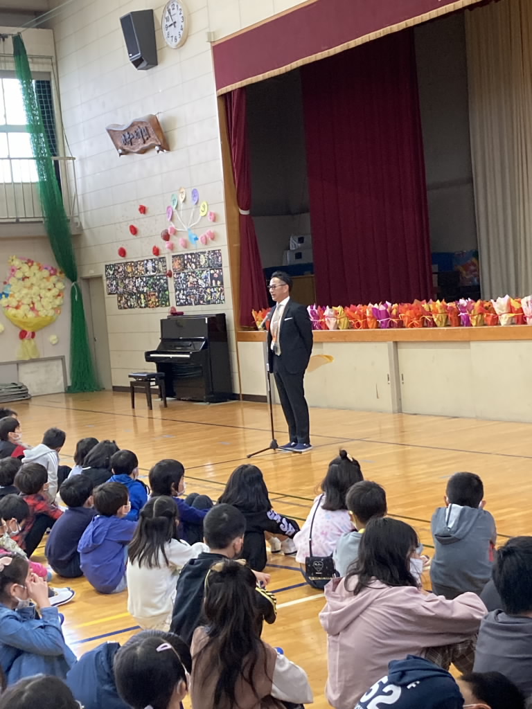 着任式では、今年度新しく着任した教職員を紹介し、代表の教職員から子どもたちに挨拶をしてもらいました。