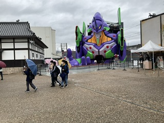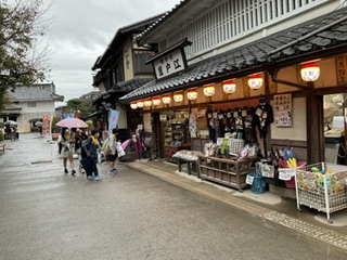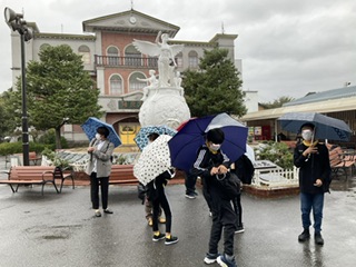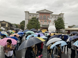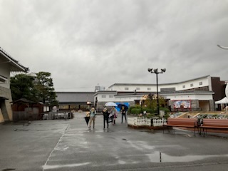 雨の中、太秦映画村で班別行動。お天気のせいか予想に反してお客さんが少なく、ほとんどのアトラクションが並ばずに楽しめました。