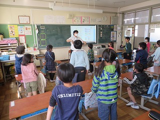 2がっきのえいごがありました。ジョン先生のといかけにも、なんとかこたえられるようになってきました。こんかいは、じぶんのきもちや名まえをつたえるかつどうでした。