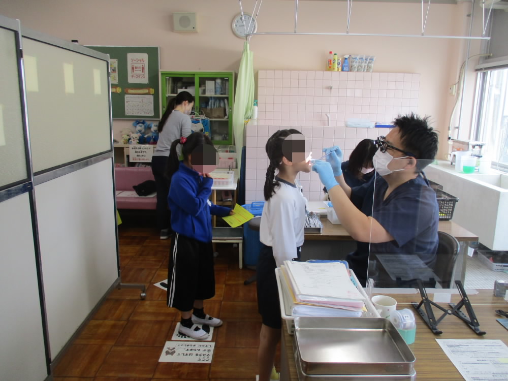 今日は、4~6年生が歯科検診を受けています。今年度も学校歯科医として「歯科診療所ひまわり」の井上博先生にお世話になります。