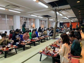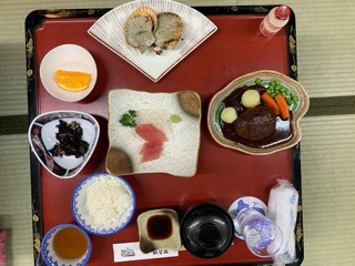 旅館について入館式、部屋長会議を終え、今は夕食をいただいています。