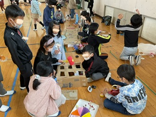 そんな寒い中、2年生は生活科で「おもちゃランド」を開きました。