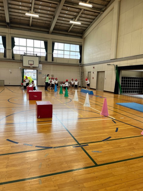 今日の3限目の体育は、色々なコースをグルグルまわりました!