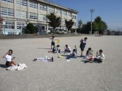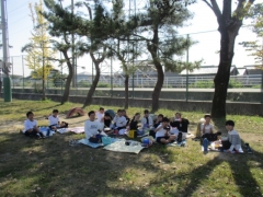 いつもと違う雰囲気の中で食べる給食に、子どもたちは大喜び!「ピクニックみたい!」「外で食べるともっとおいしいね」と、笑顔があふれていました。