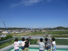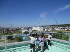 羽津北小学校には、昨年度防災対策として屋上に上る階段が設置されましたので、今年は学校の屋上から近くに見えるものを調べました。