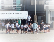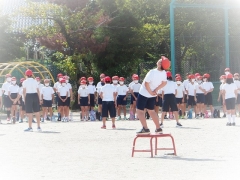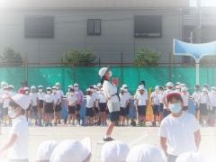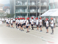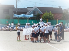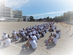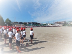 本日1限目に全校児童による1回目の運動会全体練習をしました。先日の台風の影響でテント設置を延期しており、天気が良かったので影がなく暑くなっていましたが、水分補給をしながら、全校児童で頑張りました。