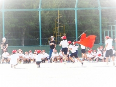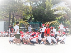 その後は、応援合戦の練習です。紅組白組、どちらも声かけや振りを合わせて頑張りました。応援団のみなさんは日々の練習が発揮されており、他の児童たちをリードしています。どちらの応援団のリーダーも目標を掲げ、練習の終わりにはしっかり振り返りを考えみんなに伝えていました。とても頼もしいリーダーの姿がありました。練習後、応援団は集まって反省をしています。自分たちで運動会を作り上げようという意気込みが伝わってきます。あと1週間ですね!ワクワクがどんどん高まってきます。