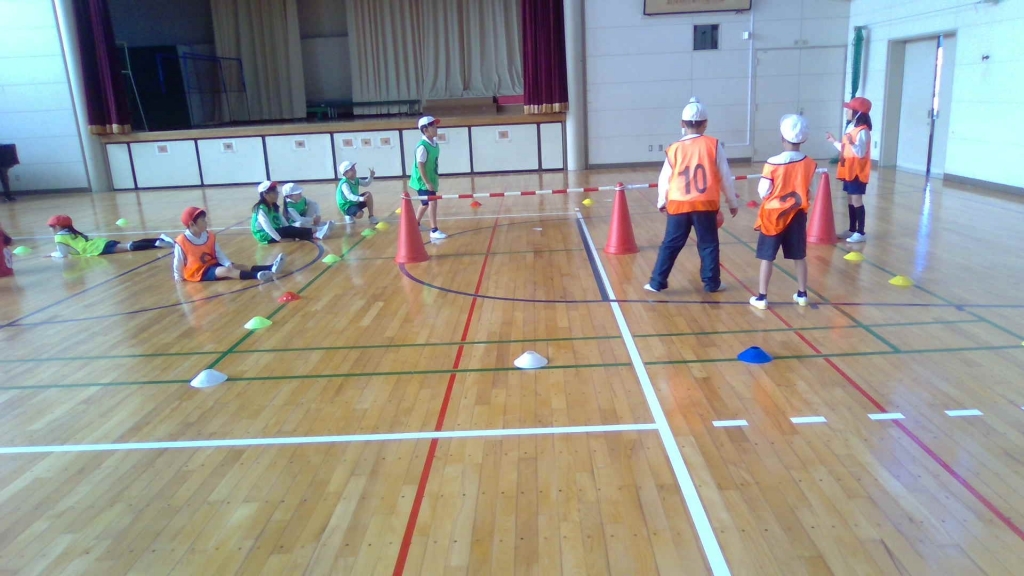 2年生体育、ボールゲームでの運動。題して「ボンバーマン」。