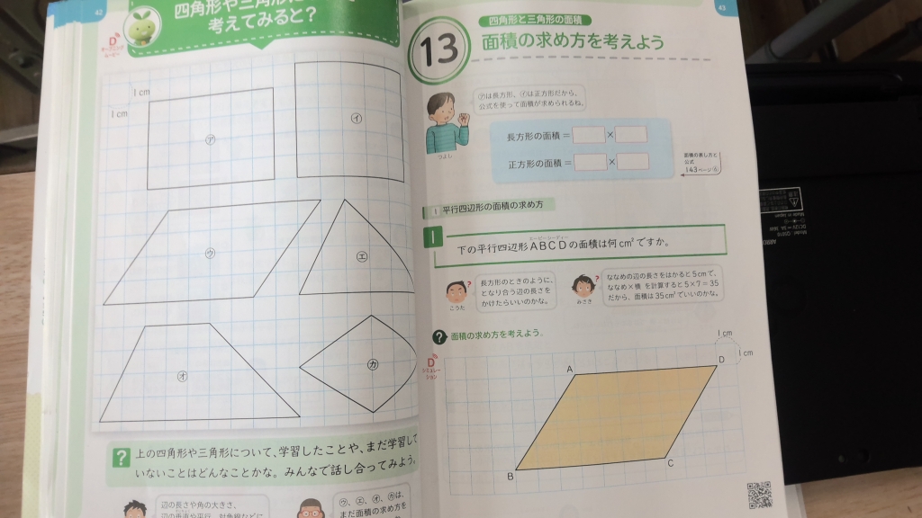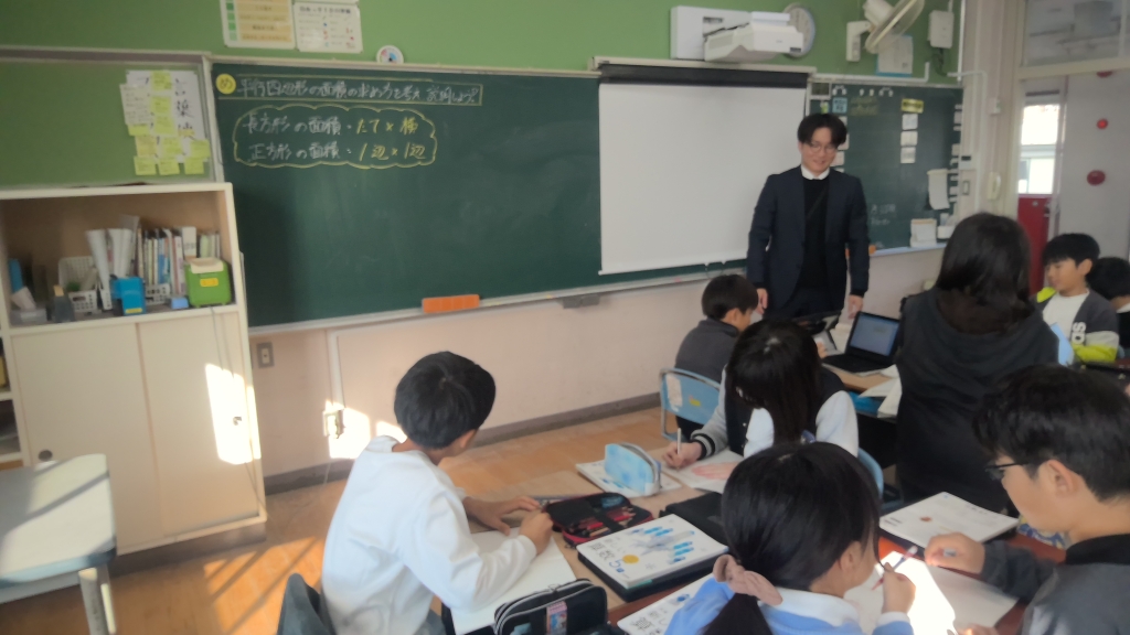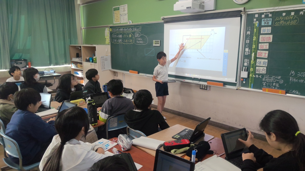 思考の末に平行四辺形の公式にたどり着くことができるのか、頑張る5年生です。