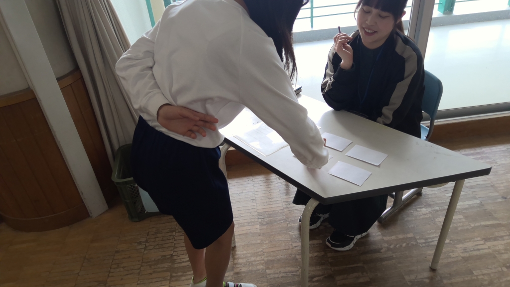 「My name is ~」に続いて、修学旅行に関する質問などの受け答えを6年生が行っていました。少し緊張しながらも、覚えた構文や単語を使い、受け答え。英語で意思疎通できると「通じた」「聞き取れた」「わかった」とうれしさが積みあがっていきます。こつこつと英語に親しみ、活用する6年生です。