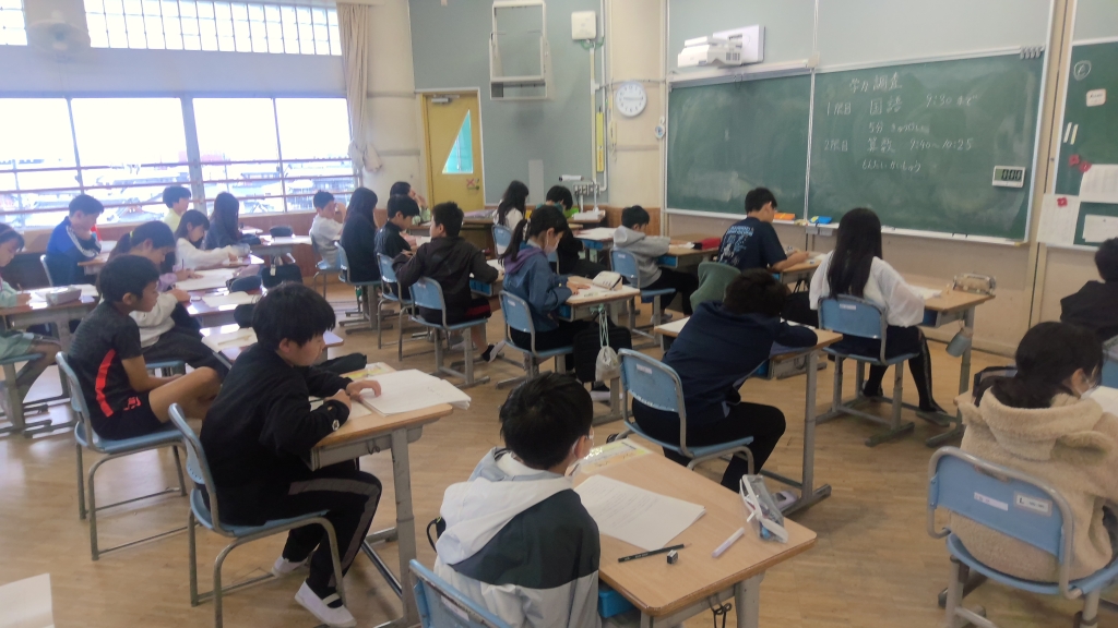 全国学力テストは、全国的な児童生徒の学力や学習状況を把握・分析し、教育施策の成果と課題を検証して、学習指導の充実や改善などに役立てることを目的としています。対象は、小学6年生と中学3年生。教科に関する調査は、小学校が国語と算数、中学校が国語と数学と英語です。日永小6年生も真剣な表情で問題に取り組みました。 それぞれの学習状況を振り返る機会とし、これからの学びにつなげていきます。