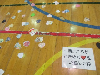 体育館に入るの目の前にはたくさんのハートが散りばめられており、