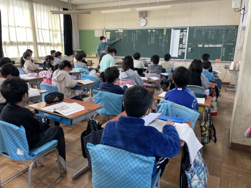 『ごんぎつね』の学習では、物語を読んで感じたことを伝え合うことが学習のめあてとなっています。今日はごんはいいきつねだと感じたのか、悪いきつねだと感じたのかを話し合っています。「教科書◯◯ページの◯行目に・・・と書いてあるから・・・と思います」と叙述をもとに意見を述べる姿が素敵でした。