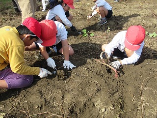 子どもたちは、夢中になって、いもほりにチャレンジしていました。