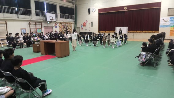 本日より令和8年度新学期がスタートしました。児童のみなさんは元気なあいさつと笑顔で登校しました。1限目、着任式と始業式が行われました。11人の新しい先生方との出会いをあたたかな拍手で包んでくれました。