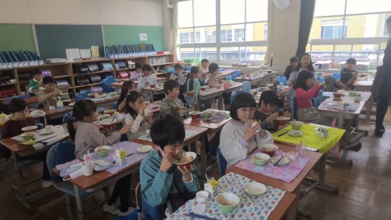 いよいよ今日から給食が始まりました。新年度最初のメニューはごはん、マーボー豆腐、もやしのナムル、お祝いゼリーでした。各クラス満面の笑顔で給食を楽しんでいました。今週も今日で終わりです。週末はいろんなことにチャレンジしてみては。では、また元気に来週を迎えましょう。