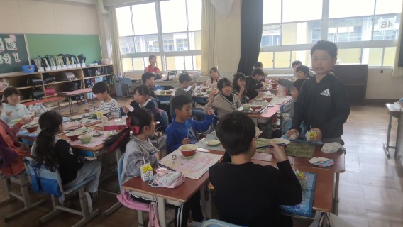 このクラスでは。みんなで丸くなって楽しく食べていました。