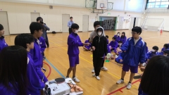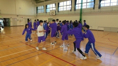 体育祭の縦割りチームに分かれて、クイズやボール回しゲーム、風船運びリレーをして交流しました。