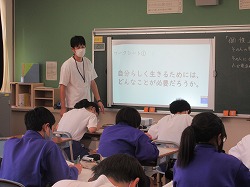 本日5限目は道徳科の時間でした。本校は教材によって授業者が決まる、「ローテ―ション道徳」を実施しています。本日は1年生が「選ぶということ」「誰もが安心して過ごすために」2年生が「「狂言師・野村萬斎物語」「五万回斬られた男・福本清三」3年生が「ひび割れ壺」「無限の道」を教材にした授業でした。(1年生「誰もが~」以外は教科書による)
