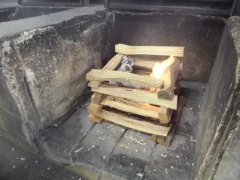 また、かまどチームは、薪の組み方を工夫しながら、空気の通り道を意識しながら、四角形や三角形の思い思いの薪組みをしました。