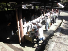 野菜を切ったり、米を研いだりする調理チームと、窯で薪を組んだりするかまどチームに分かれ作業をしました。
