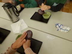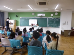 また、三味線の音の出し方や音の違い(3本の糸をばちでたたいて音を出すとき、すくって音を出すとき、左手で糸をはじいて音を出すとき)も紹介していただきました。