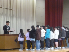 今日の5時間目、表彰、全校たてわり集会を行いました。
