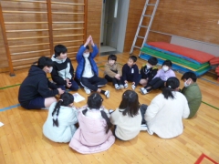 1年生から6年生までの全学年が入るように班を作り、その班でゲームを楽しみました。