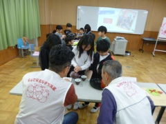 今日は緊急地震速報が流れた後で、震度5強の地震が発生。児童が避難後、行方不明児童が1名いるという想定でした。