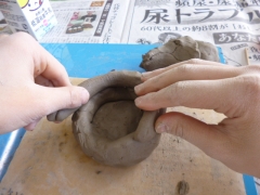 お茶わんや湯飲み茶わん、小物入れや植木鉢、皿などなど、作りたいものを思い浮かべ作品作りに取り組みました。