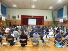 本校の目指す学校のすがたや学校生活の様子、お願いや入学までの準備等のお話をさせていただきました。