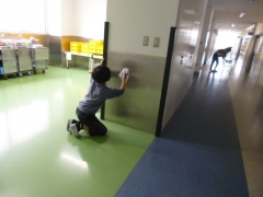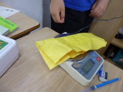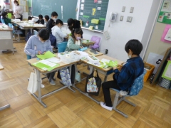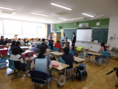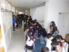 朝の会の時には6年生が1年生からプレゼント(手作りペンダント)を首からかけてもらっていました。
