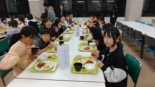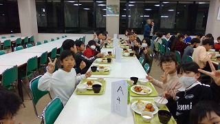 1日目、入所式を行った後、食事をとりました。唐揚げの食事でした。たくさんの子たちがおかわりをしていました。