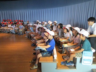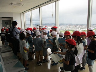 3年生がはじめてバスに乗って社会見学に行きました。行先は「三重県茶業振興センター」と「ポートビル」です。今まで社会の勉強で学んできたことを実際の目で確認してきました。茶畑を見た子どもたちからも、「うわぁ、こんなにたくさんの畑があるんだあ…」と驚きの声もあがりました。どのように畑のお茶の葉が、飲めるお茶の葉に変身するのかも教えてもらいました。たくさんの機械も見せてもらいました。お茶の試飲もさせてもらいました。午後からは「ポートビル」です。港の働きについて学びました。たくさんの船が行き来しているところも見ることができました。