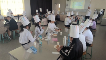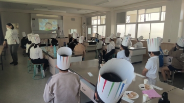5年生が家庭科の時間に「味覚について」学習しました。グミ、チョコレート、砂糖、酢等、たくさんの食材が準備してもらってありました。今日は鼻をつまんで食べた時と普段通りに食べた時の味の違い等、いろいろな感覚を体験していました。