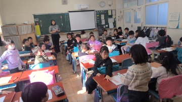 4年生が国語で「知ってほしいな 私のできごと」のテーマでスピーチを行っていました。文の構成を考え、相手に伝わりやすい文章を考えたようです。発表の際は、少し緊張しながらもしっかりと伝えることができていました。