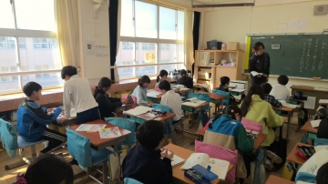 4年生の国語では、10年後の自分に向けてメッセージを考えていました。就きたい職業のこと、今の自分の楽しみにしていること等、様々なことを書いていました。また、書く前に友だちとたくさん話し、自分の思いを膨らませている子もたくさんいました。10年後の姿が楽しみですね。
