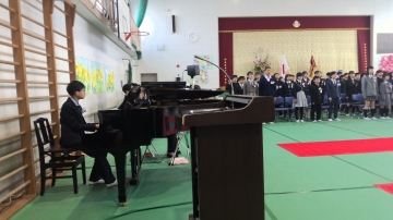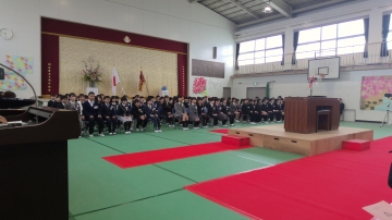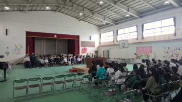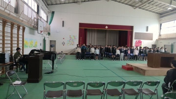 朝から風が強く会場の体育館は少し寒く感じるほどでした。しかし、子どもたちの真剣な姿と笑顔によって、とてもあたたかい雰囲気の卒業式となりました。卒業生88名。一人ひとりが堂々と卒業証書を受け取りました。旅立ちの言葉では、小学校生活6年間を振り返るとともにこれからについても語る場面がありました。とても素晴らしい姿でした。