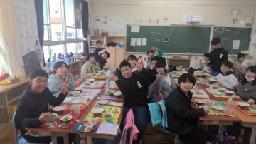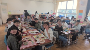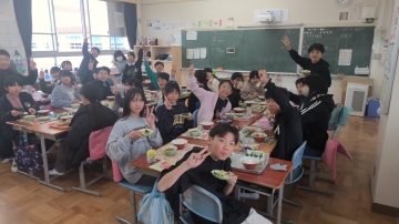 みんな笑顔いっぱい、最後の給食を楽しんでいました。
