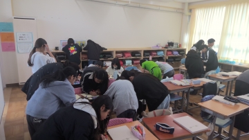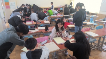 3時間目には卒業アルバムにみんなでメッセージを書き合っていました。