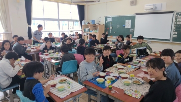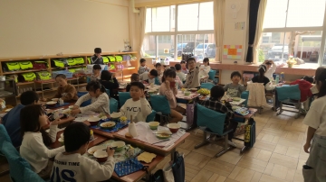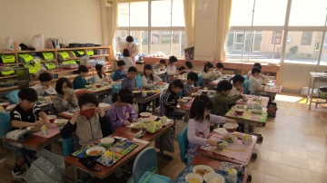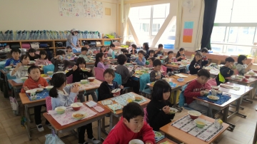 今日で今年度の給食が終了です。毎日おいしい給食を作っていただいた方々に感謝するとともに、みんなおいしそうに食べていました。