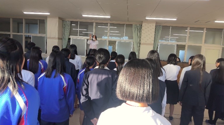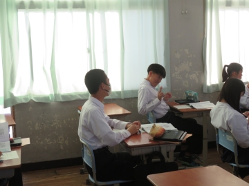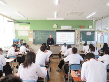 3年生では、平和学習を行いました。講師は広島でピースボランティアをされている西村宏子さんで、オンラインで広島とつなぎました。西村さんは四日市市で採用されている英語の教科書に活動が掲載されています。現地の方からのお話から戦争や原爆投下の被害や、その背景を知ることができました。平和について、知ること、考えることのきっかけにしてほしいです。