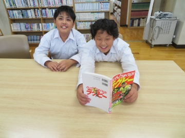 昼休みに図書室を開放しています。図書委員さんが本の貸し出しや返却の仕事を担ってい、今日もたくさんの生徒たちが来室していました。それぞれが興味のある本を手に取り、読書をしています。
