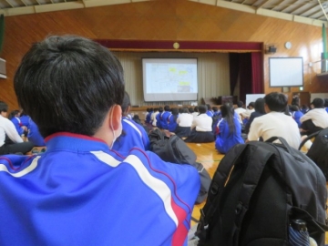 岐阜聖徳大学の山田貞二教授をお招きし、示範授業を実施しました。初対面の先生でありながら、生徒たちは自然と授業の世界に引き込まれ、活発に意見を交わしていました。