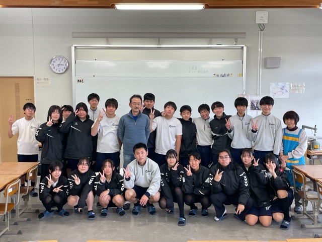 中学生のパワーに先輩は感激、卒業生の画家山内大介さんが特別授業、四日市の橋北中学